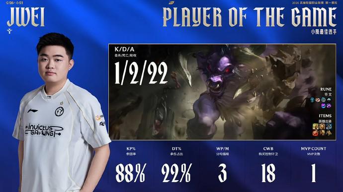 本局MVP给到数次二连开起数人的Jwei!