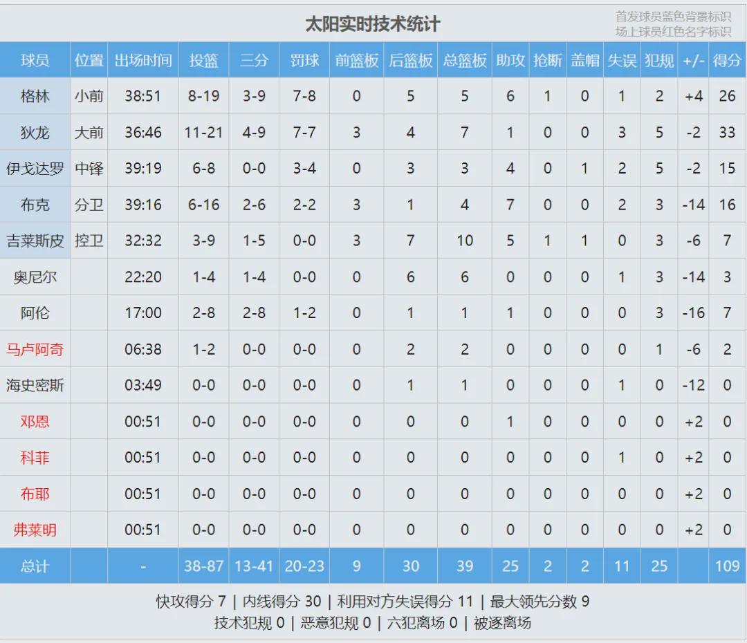 杰伦-格林19投8中砍下26分5篮板6助攻,正负值+4全队最高。狄龙-布鲁克斯21投11中,狂轰33分7篮板。龙哥连续两场爆发,上一场23投12中怒砍30分6篮板。系列赛前三场,狄龙场均27分6.7篮板1.3助攻,三分命中率42.9%。